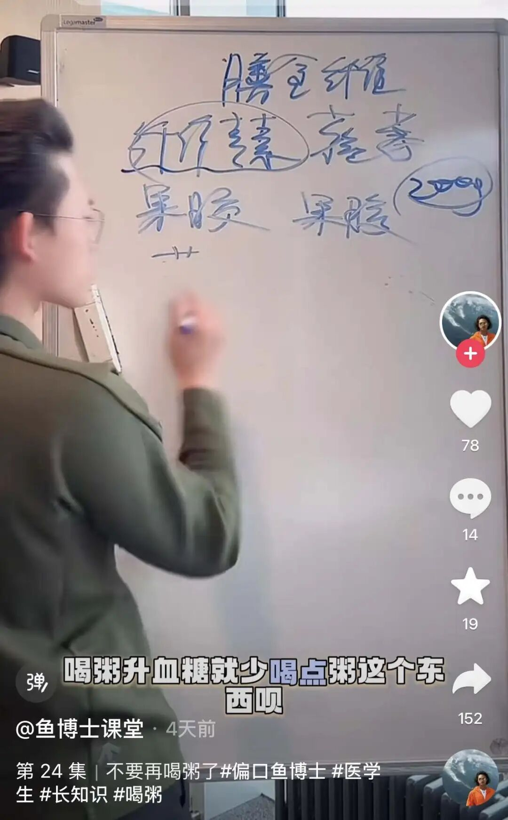 这些其实是基础营养学知识,临床医生都懂且会建议患者,但偏口鱼博士用诙谐的直播方式,“严厉”批判了人们信奉的传统碳水饮食,成了“碳水饮食最严厉的父亲”。