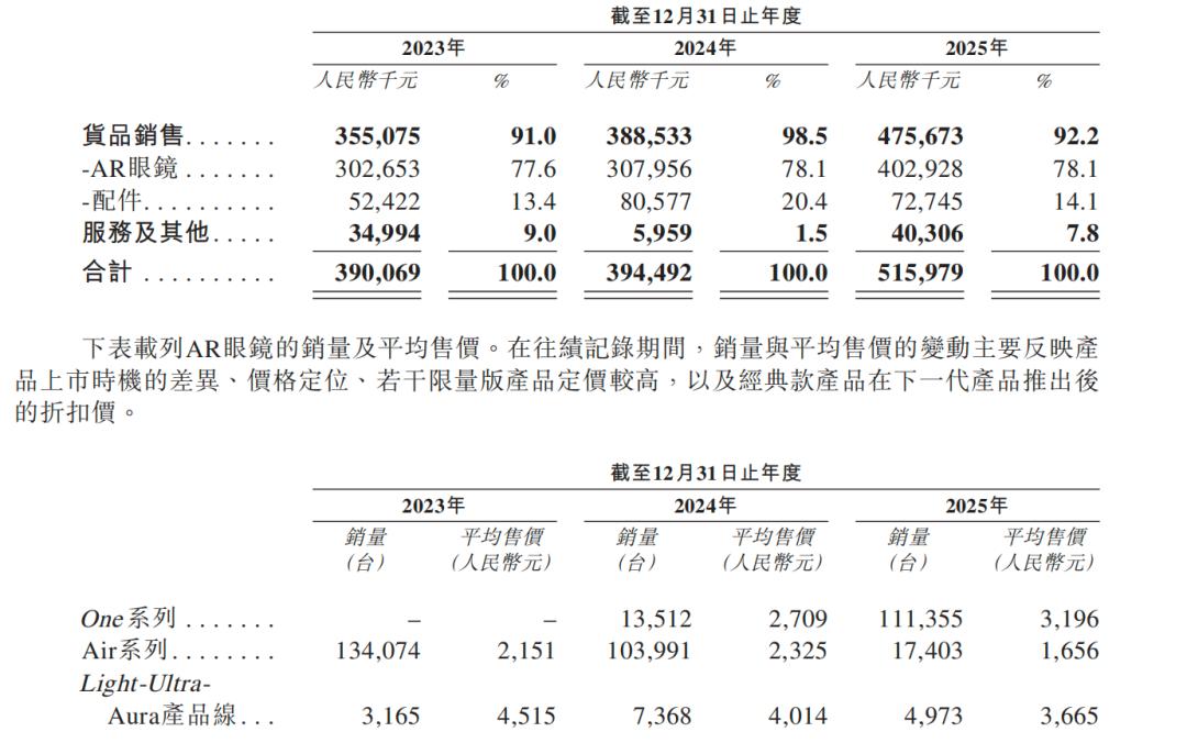 大模型爆发后,Rokid迅速转向全功能AI眼镜路线;XREAL则坚守空间显示核心,专注于影音与便携大屏领域。招股书显示,XREAL2023年至2025年的主要收入来源于AR眼镜及相关配件的销售;按销售收入计算,XREAL在2022年至2025年间每年均位居全球AR眼镜市场首位。