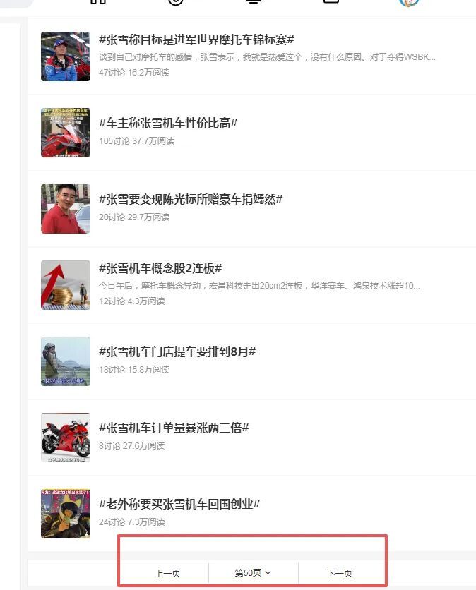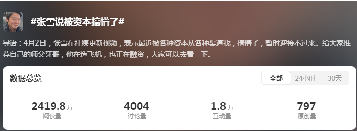 这些热搜内容涵盖面极广,从张雪的机车事业,到他的妻子、师父、投资人、前东家,甚至连他20年来的各种生活琐事都被一并挖掘出来,集中爆发。