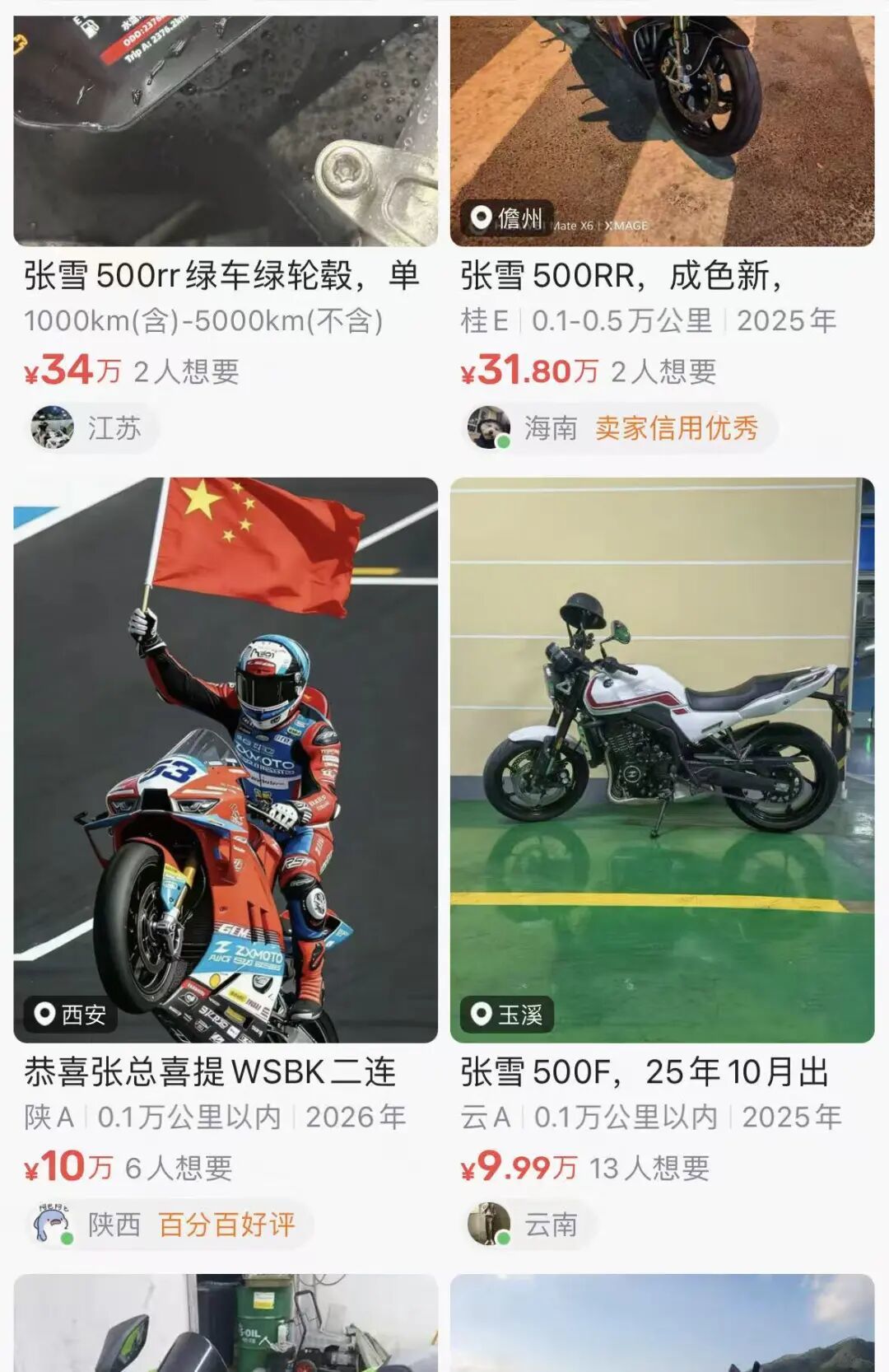 在这种情况下,张雪机车在二手平台的价格也水涨船高,最高标价达到了34万,即便价格如此之高,仍有人标注“想要”。