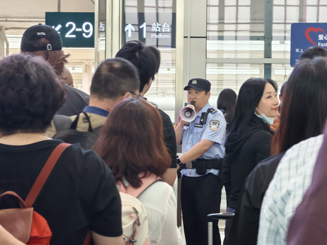 佛山铁警在清明小长假期间做好客流秩序引导工作。