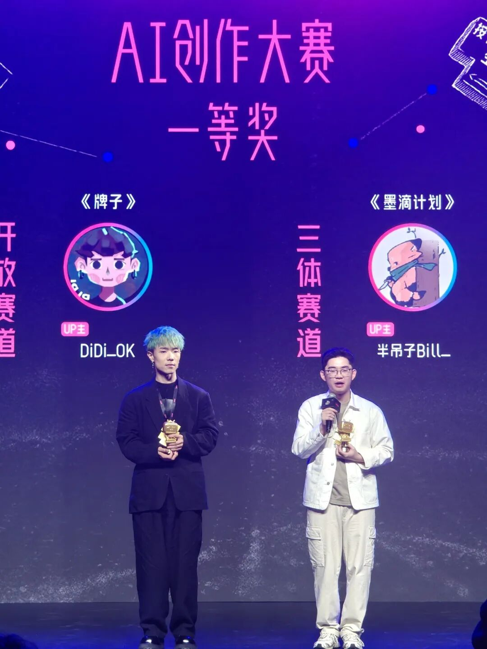 与他一同登上领奖台的,还有三体赛道一等奖得主半吊子Bill_——一位2001年出生的生物学博士生。