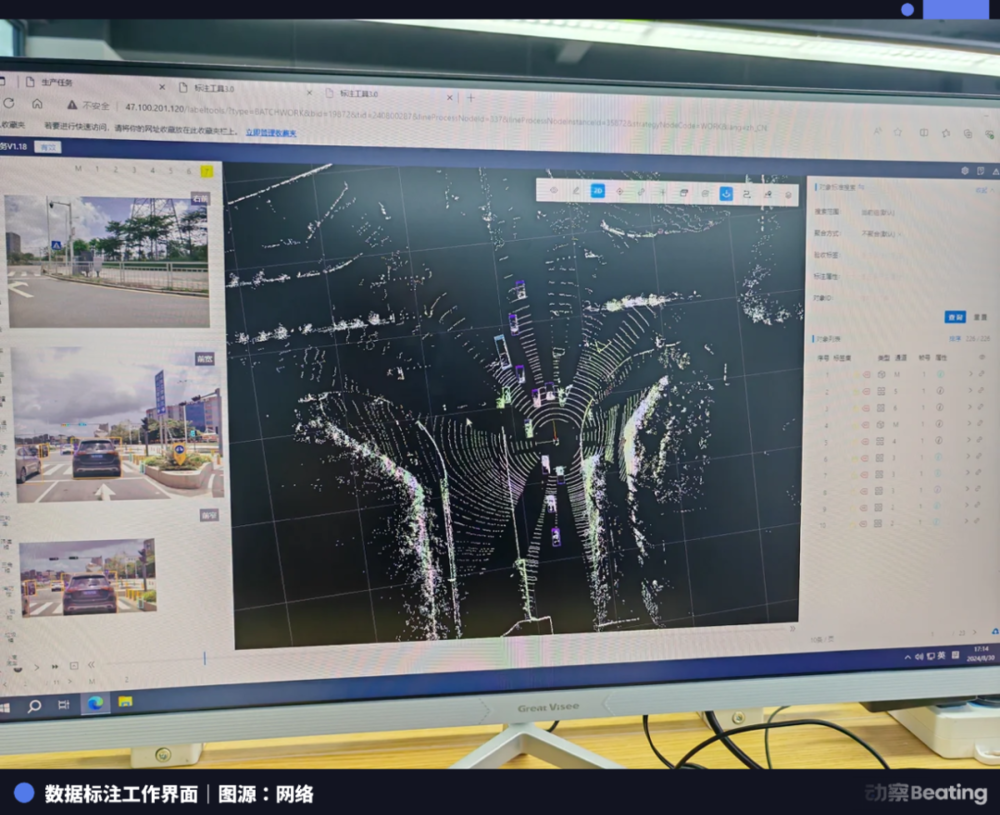 但大模型进化后,流水线的残酷性显现。2023年,简单图像标注单价跌至3-4分钱,跌幅超90%;难度更高的3D点云图,标注员需在三维空间拉立体框包裹车辆或行人,一个复杂3D框也仅5分钱。