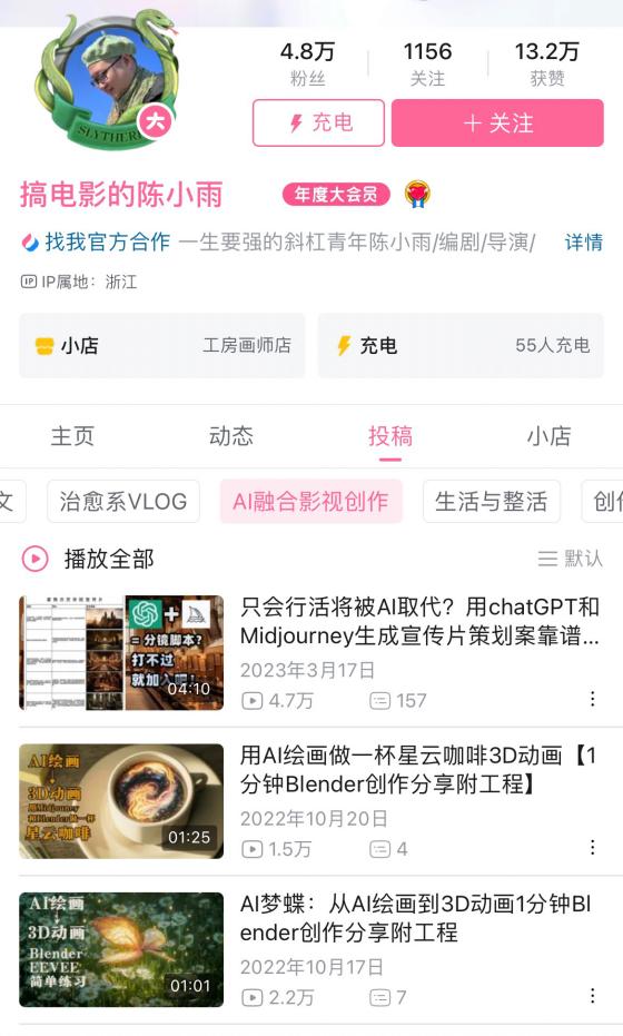 对话快结束时,聊起他这些年的创作转向,从小说到纪录片,从剧情片到动画,再到现在的AI创作,媒介在变,但有些东西始终没变。陈小雨还是会比较关注角色的内心,以及现实世界和幻想世界当中的连接。