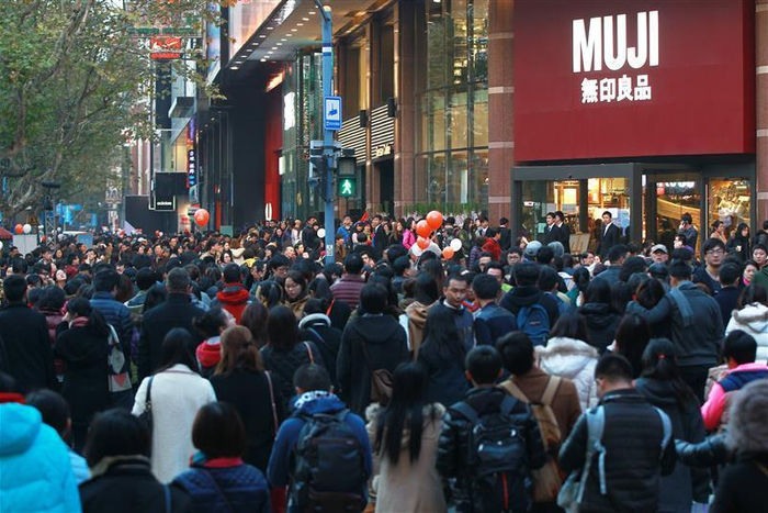 (MUJI淮海755旗舰店开业当日排队入场队伍长达800人)