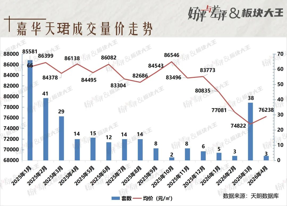 3月网签71套,仅次于2025年6月首开月的88套,成交量大,但均价72375元/㎡,创历史新低。