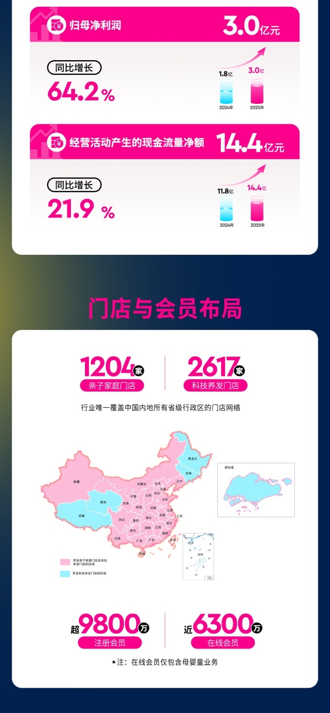 运营质量同样表现出色。经营活动现金流净额达14.4亿元,同比增长21.9%,充足的现金流为公司后续发展提供了坚实保障。总会员数量超9800万,其中在线会员占比近三分之二,线上线下融合的用户基础持续巩固。