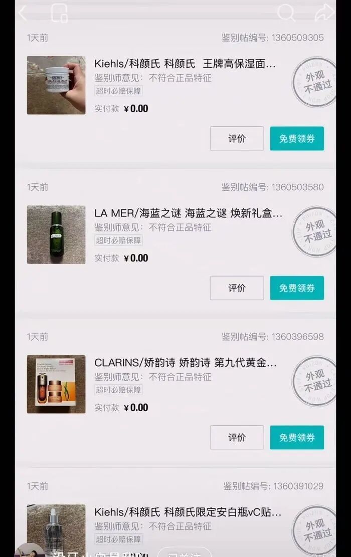 为了确认自己的判断,她把商品细节图上传到第三方鉴定平台得物进行鉴定,结果显示相关商品均为“外观非正品”。