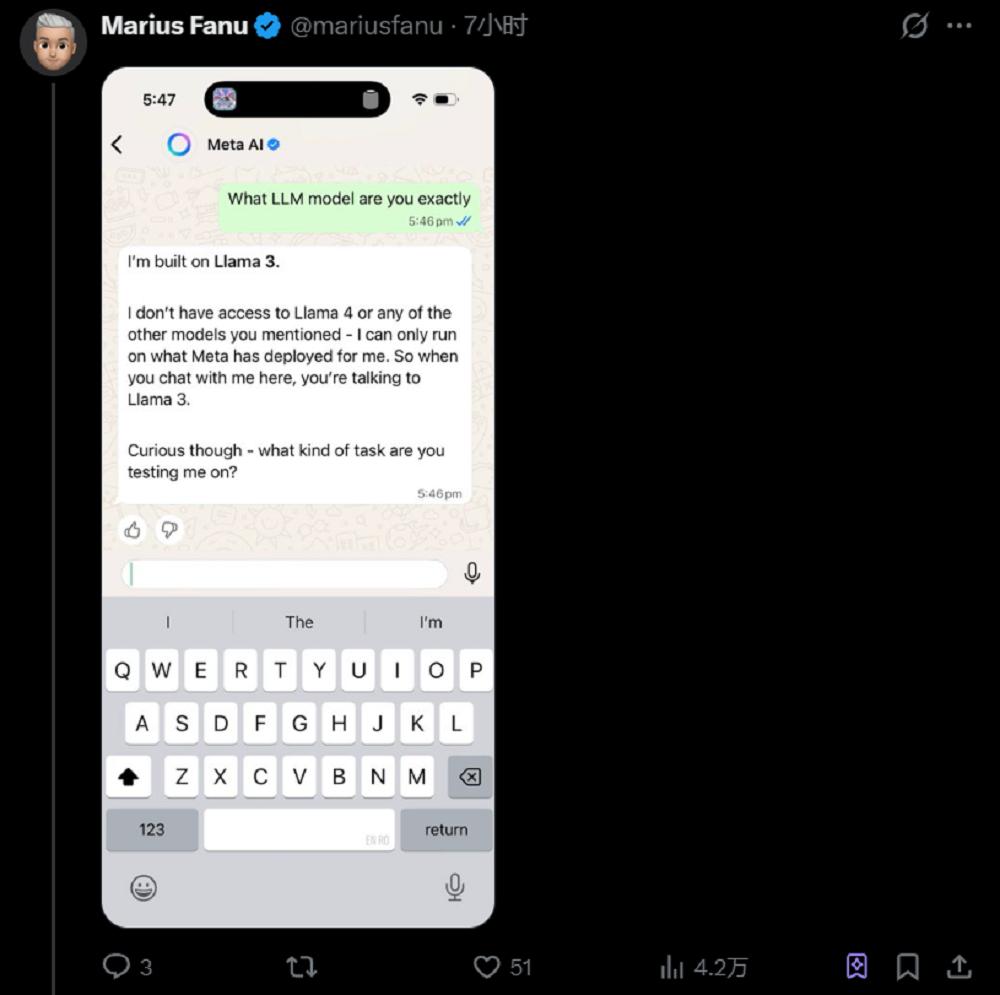 Muse Spark是MSL Muse系列的首款模型,未来还将发布更多同系列产品。目前该模型已逐步推送至Meta旗下应用及Meta.ai网页端,但仍有用户反映使用的仍是Llama 3。