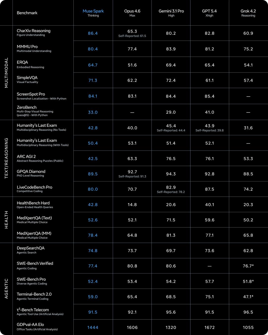 从基准测试结果看,Muse Spark在多模态感知、推理、医疗健康及智能体等领域表现处于行业第一梯队。不过MSL也承认,该模型在长程智能体系统和编程工作流方面仍有提升空间。