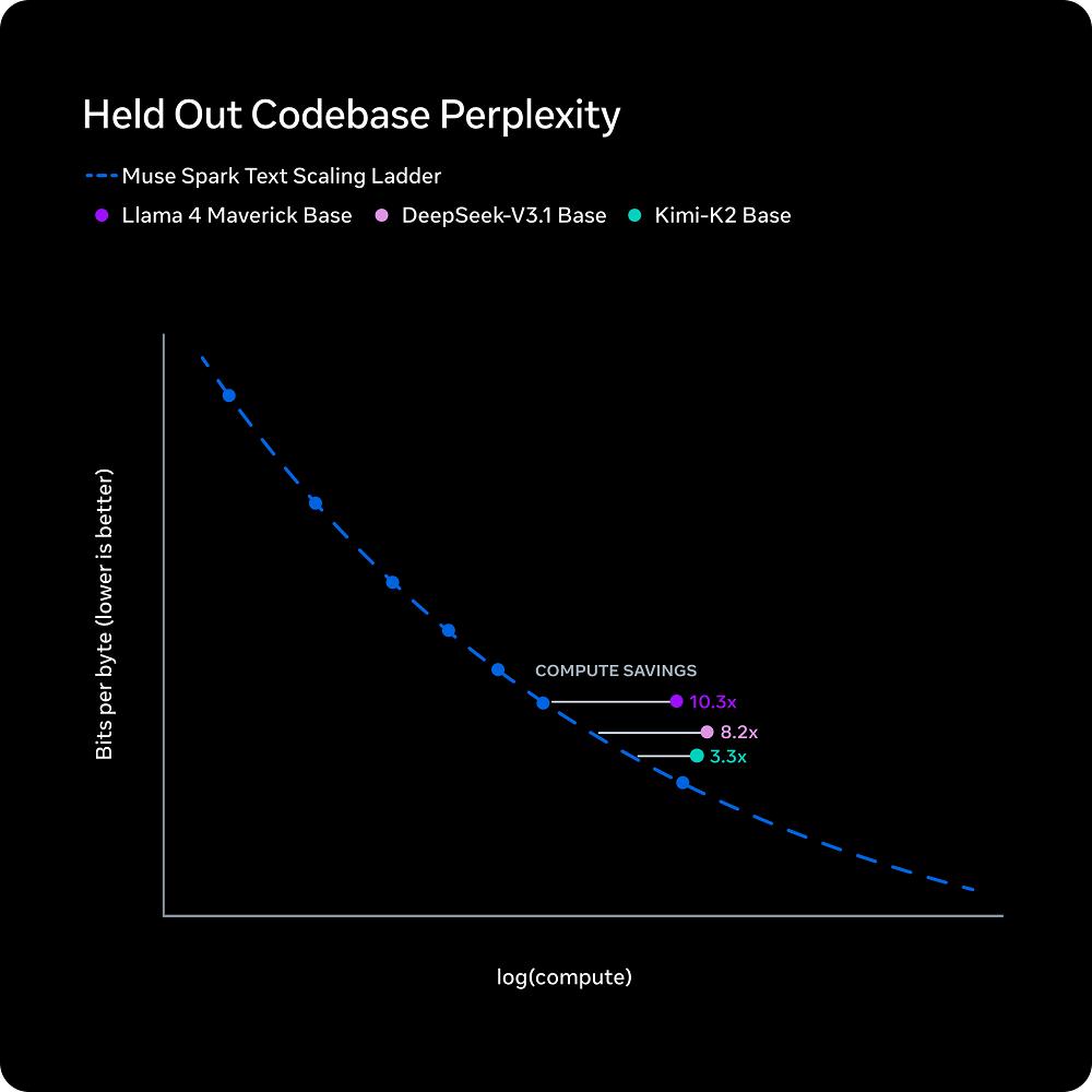 技术层面,MSL大幅提升了算力利用率:与此前的Llama 4 Maverick相比,Muse Spark用少一个数量级以上的计算资源就能达到相同性能。