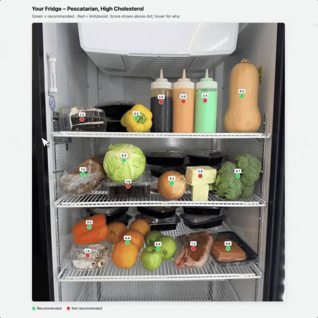 或是告知Muse Spark自己有高胆固醇问题,让其基于多模态能力和医疗知识制作动态食物推荐页面。