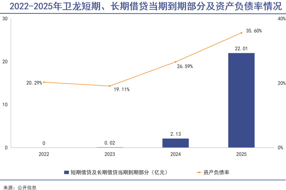 2025年末,卫龙资本负债比率从2024年末的26.59%升至35.60%,主要因短期借款暴增933.6%,从2.13亿元激增至22.01亿元,短期偿债压力陡升。