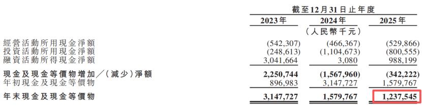 截至2025年末,清陶能源账上现金及现金等价物约为12.38亿元,较2023年底的31.47亿元显著减少。