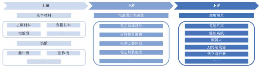从固液混合及全固态电池的产业链来看,电池制造商是该领域研发与生产的核心,涵盖电芯结构设计、材料体系选择、制造工艺开发及封装集成等环节。
