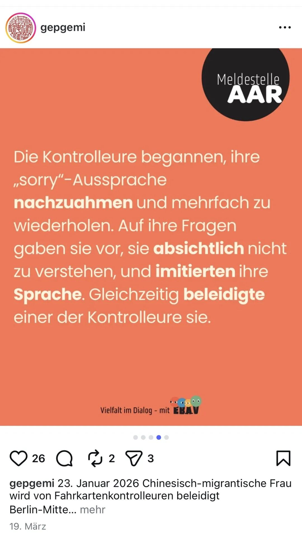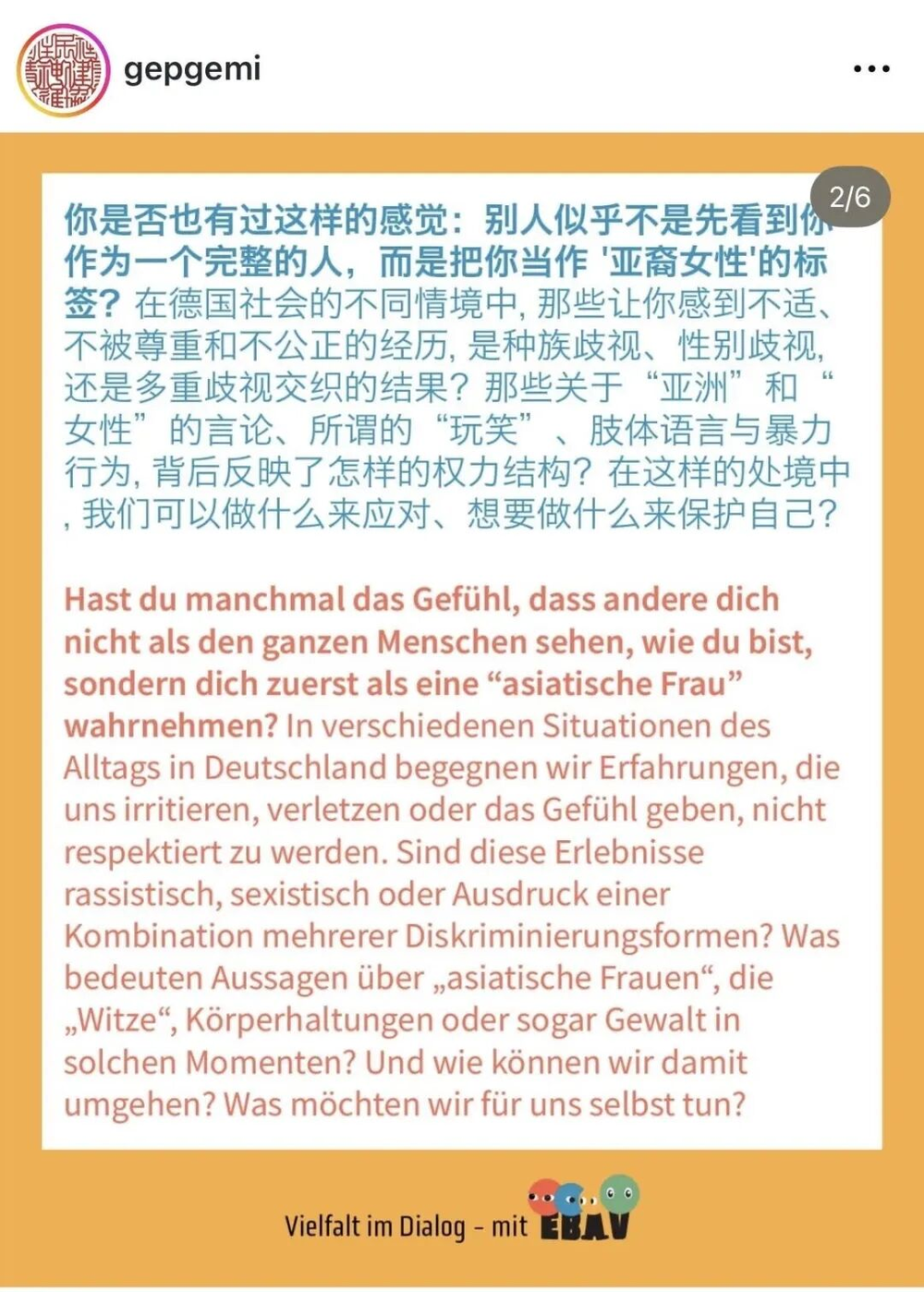 关注gepgemi的Instagram账号会发现,类似事件常被公布,这些案例会统一上报德国政府。协会受德国公共资金支持,鼓励亚裔分享歧视经历,以此让政府认识到针对亚裔的歧视是普遍存在的。