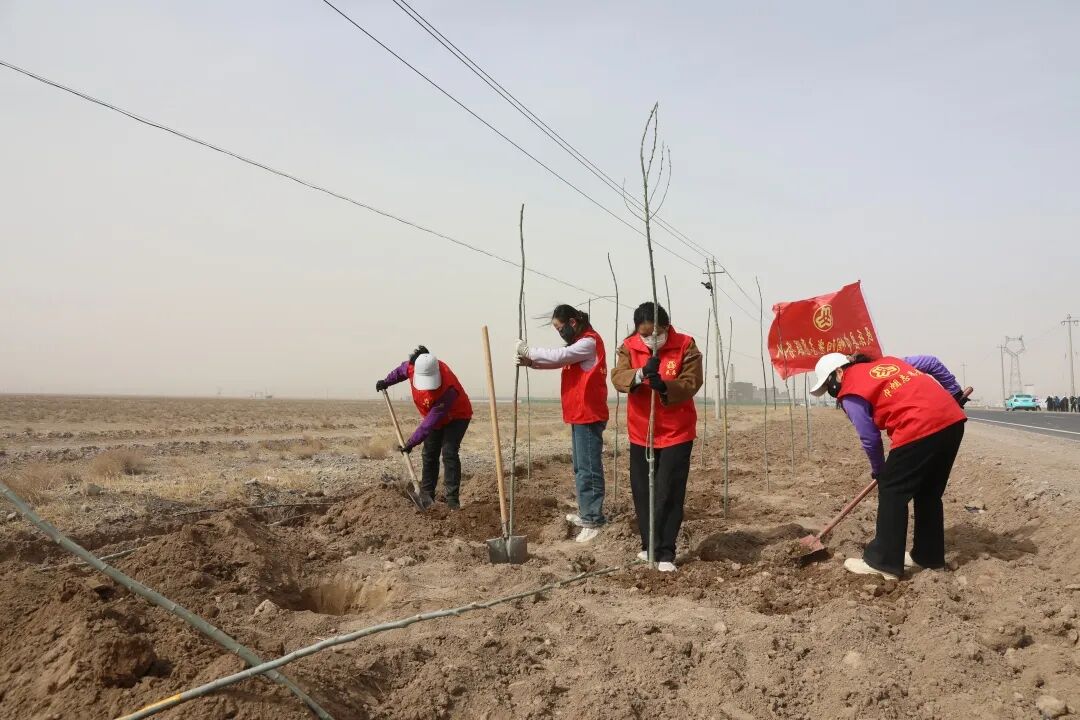 为深入践行绿色发展理念,积极响应国土绿化行动号召,进一步发挥妇联组织和妇联干部在生态文明建设中的巾帼带头作用,4月8日,民乐县妇联组织全体妇联干部、巾帼志愿者,前往民乐县工业园区化工大道中科能源化学东侧开展义务植树主题活动,以实际行动为生态家园添绿增彩。