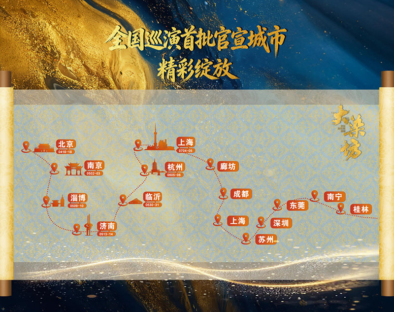 目前,舞剧《大染坊》北京、南京、淄博、济南、临沂、杭州、上海站已正式开票,全国首轮巡演计划覆盖16座城市,共安排34场演出,其余城市的场次将陆续开票。