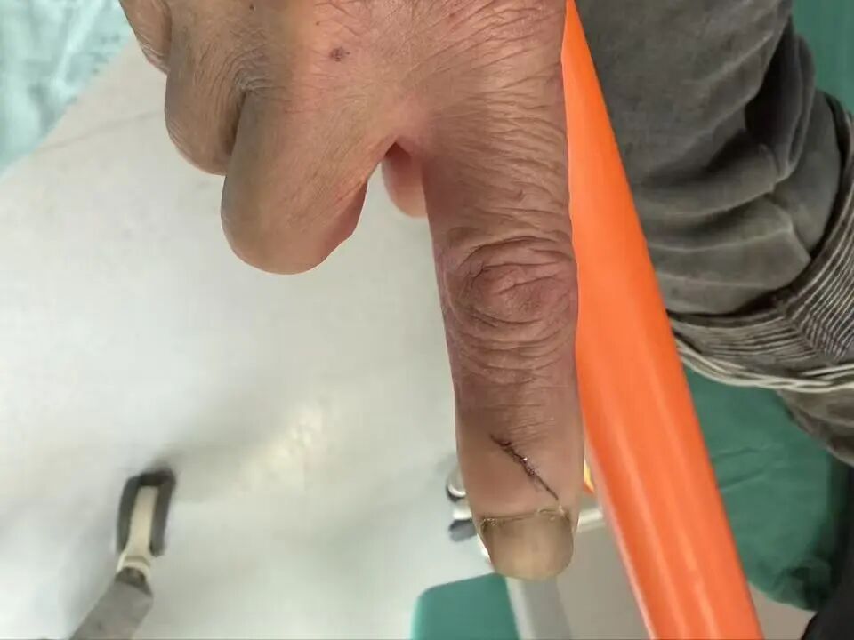 4月2日,吴大伯在自家院子里拔草,右手食指突然传来一阵剧痛。他赶紧抽回手,看到一条褐色的蛇快速溜走。仔细查看后发现,手指上除了两个细小的牙印,还有一道明显的划痕,这正是眼镜蛇咬伤的典型特征——毒牙较短,被咬者挣脱时容易形成“咬+划”的伤口。