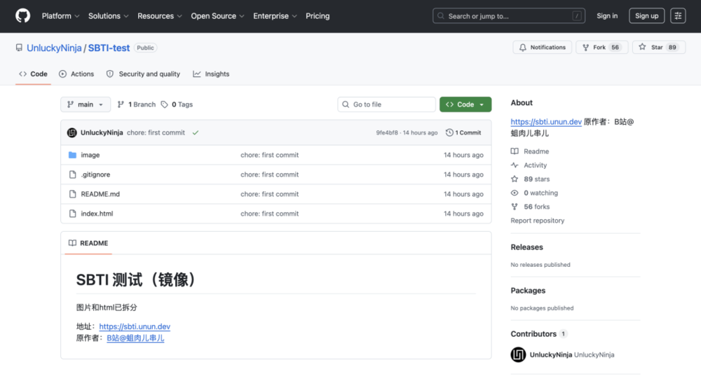 项目链接:https://github.com/UnluckyNinja/SBTI-test