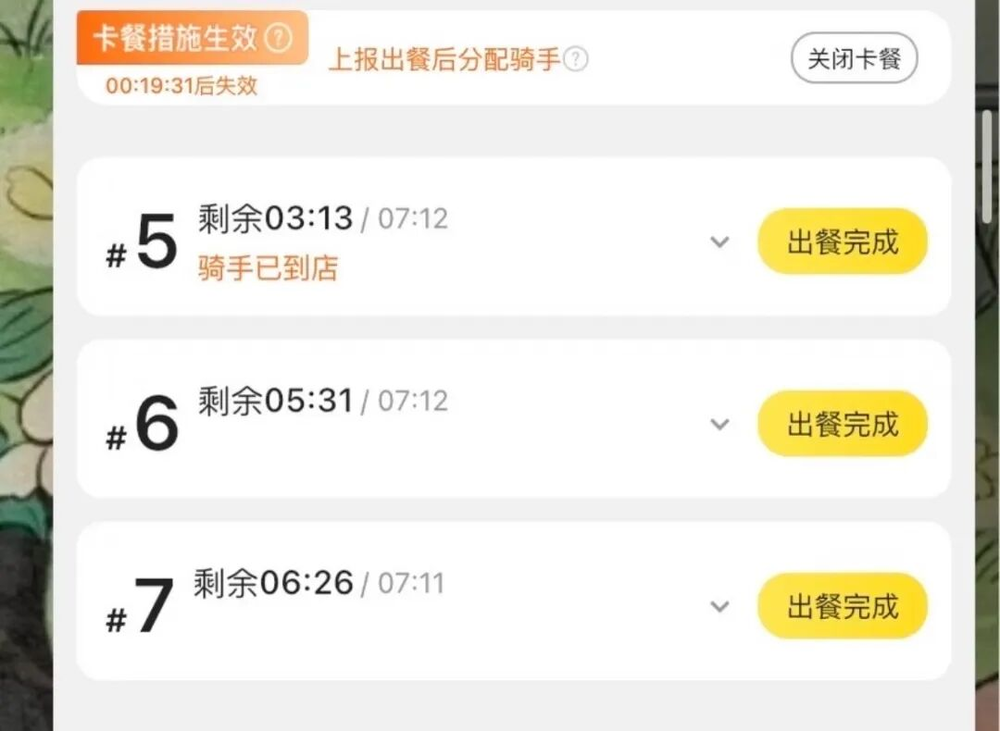 但对中小商家,尤其是一人店、夫妻店这类店型,因人力成本或非标准出餐流程,无法做到极致效率时,选择卡餐上报适当延长时间或许也是一种选择。