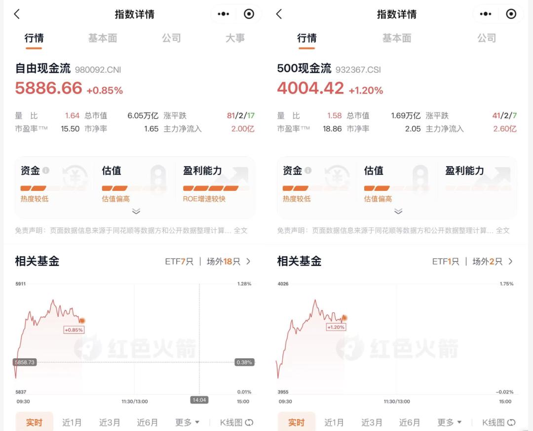 在沪深300、中证500样本空间内,分别挑选50只自由现金流率较高的股票,编制成300现金流、500现金流指数,前者代表大盘蓝筹股的现金流状况,后者聚焦中小盘。两只指数均有对应的ETF产品。