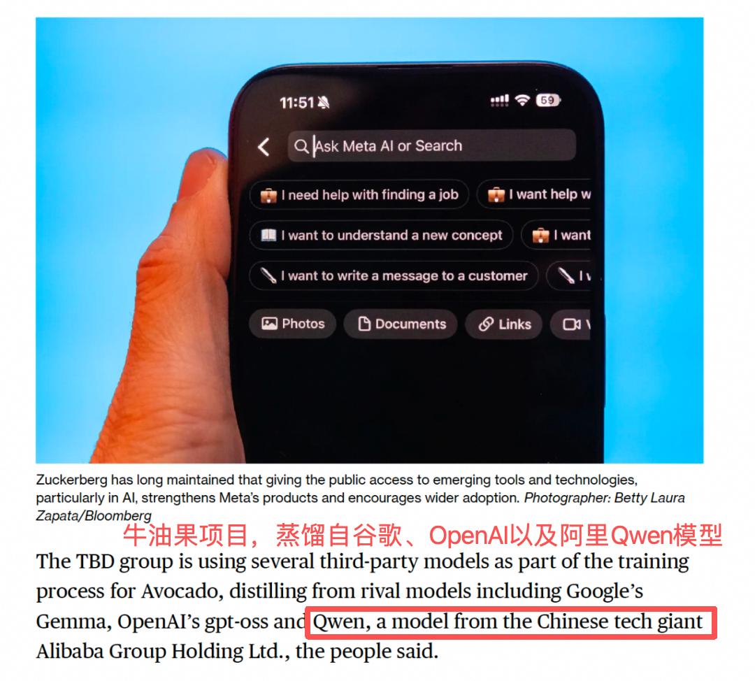 去年12月,Meta的“牛油果”项目被曝出使用Qwen开源模型进行蒸馏训练。