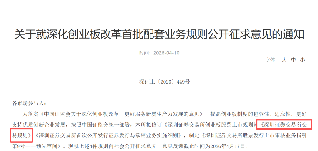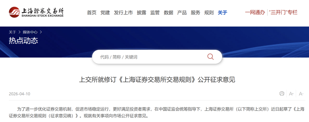 资本市场基础交易制度迎来重要优化窗口!4月10日,上交所、深交所、北交所三大交易所同步就交易规则修订公开征求市场意见,旨在进一步提升市场运行效率、满足投资者多元化需求、强化交易监管与投资者保护。