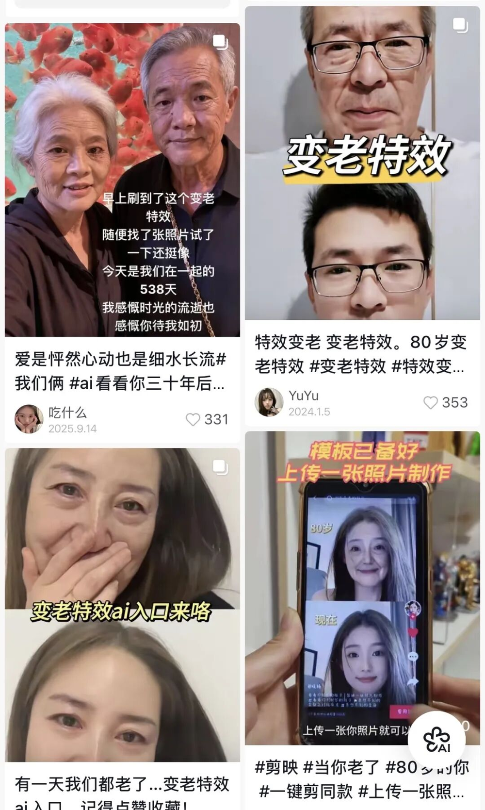 (社交媒体上一些“变老特效”的使用)