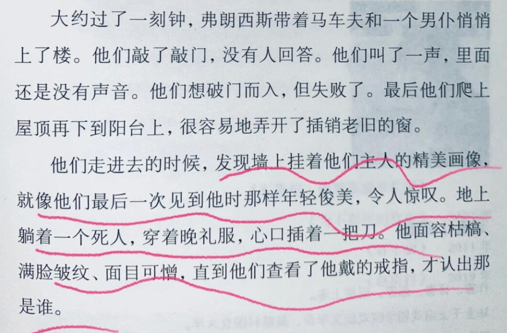 (《道林·格雷的画像》最后关于道林死亡的描述,画像积累的丑陋衰老反噬了他)