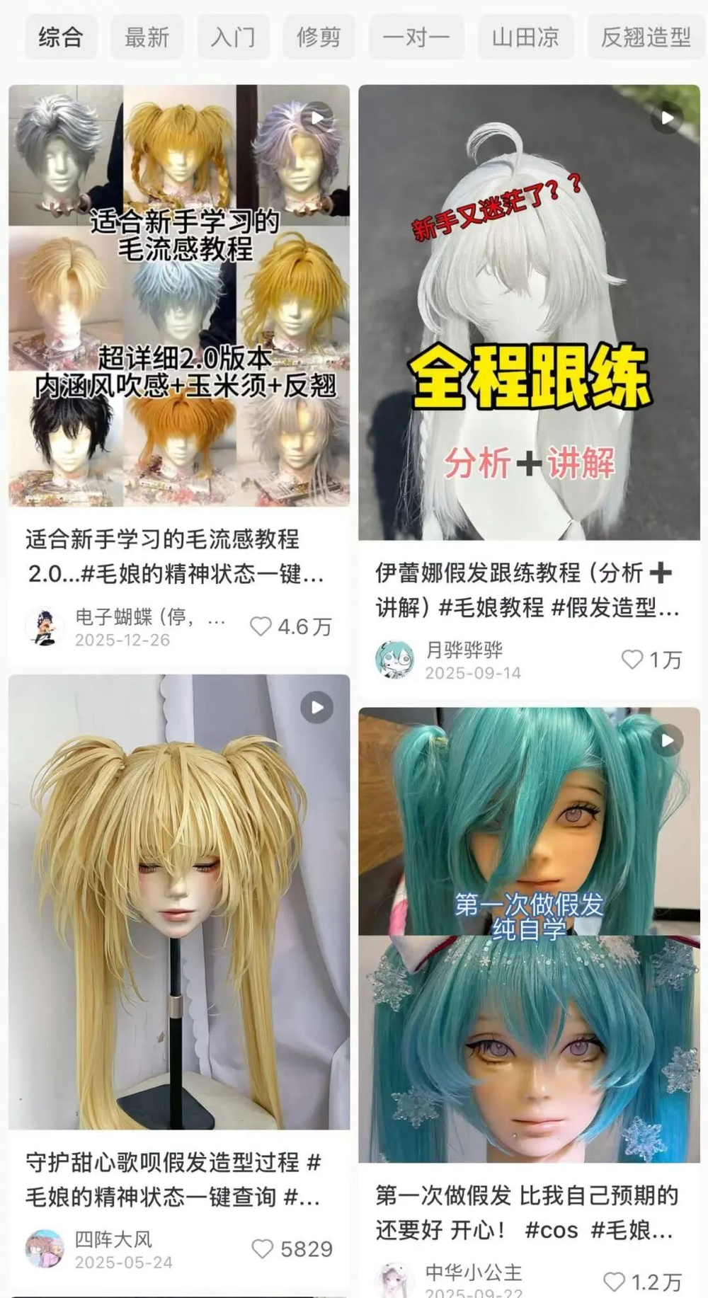 最开始,两人的视频记录的都是普通发型的制作过程。
