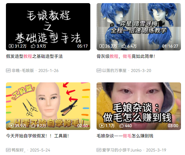 2023年最后一天,她上传了第一条假毛制作视频,正式开启了二次元毛娘之路。