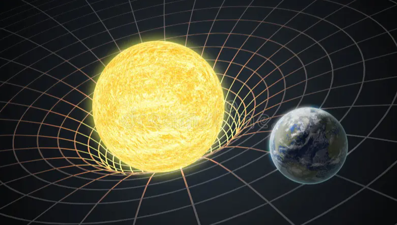 为了直观阐释广义相对论,许多教授在课堂上常用床单与铅球的例子:原本平坦的床单如同时空,乒乓球会沿直线滚动;若放置大质量铅球,床单会被压出凹陷,此时乒乓球的轨迹会变为曲线,甚至绕铅球旋转。