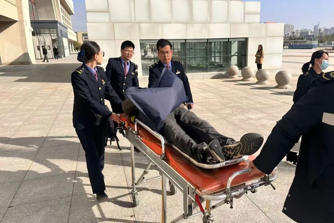 9点10分,120救护车抵达庆阳站。医护人员对宋先生进行初步检查后,建议他暂停行程,前往医院接受进一步诊断治疗。陈鑫与同事协助医护人员,小心翼翼地将宋先生抬上担架,安全送上了救护车。