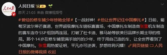 然后就是3月底,张雪机车拿下两个冠军,全网沸腾。