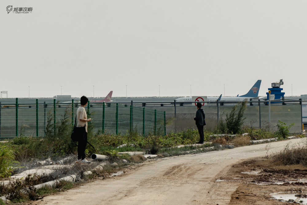 偶尔能看到建筑工人在阴凉处休息,其余多是专程来看飞机的人。大一学生陈同学就是其中之一,他特意从学校赶来拍飞机,这是第二次来。