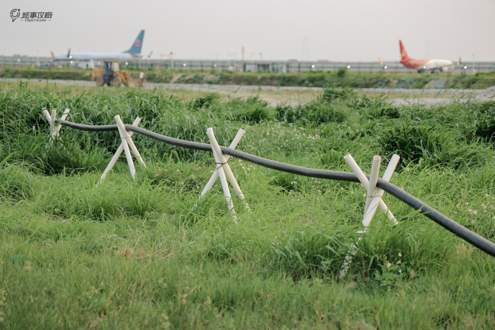 风一吹,整片杂草齐刷刷朝一个方向俯身,姿态整齐又带着几分苍凉,这是机场北站独有的“荒芜美学”。