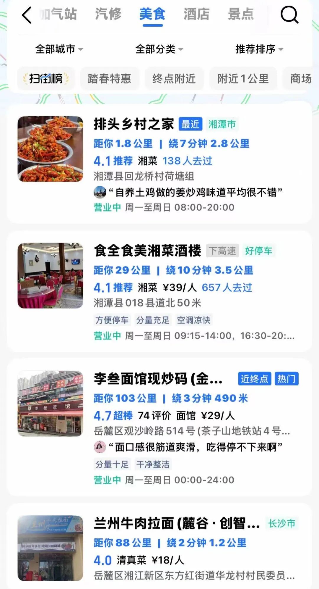 郭先生最近在湖南自驾,用高德搜索附近美食时,发现排名靠前的饭店大多距离自己几十甚至一百公里。
