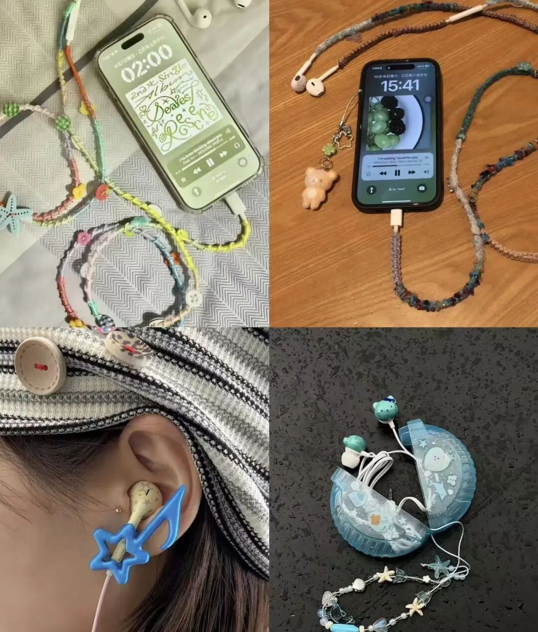 3. 时尚圈掀起“复古潮流”。有线耳机此次翻红,时尚圈起到了重要作用。在小红书上,“有线耳机穿搭”相关笔记已超10万条。年轻人还会给耳机进行手工电镀、贴贴纸,把耳机线绕在发辫上当发绳,或绕在手上当手链等。