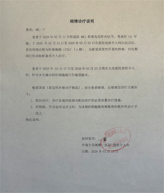 凤凰网财经讯 近日,谭先生通过凤凰投诉平台反映,今年他为家中72岁老人投保了众安保险的“全能保・住院医疗(免健告)保险”,保单自1月1日起生效。2月,老人在中南大学湘雅二医院被确诊为原发性肝细胞癌,医院诊疗说明明确该病症为新发原发性肝恶性肿瘤,老人已两次入院治疗,后续拟采用靶向治疗、肝移植等方案。