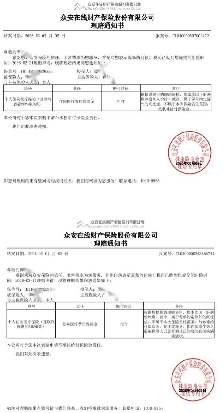 谭先生不认可拒赔理由,多次要求众安保险提供拒赔的合同及医学依据,并向金融监管部门投诉,但众安保险仅表示可继续协商,未提供相关依据。