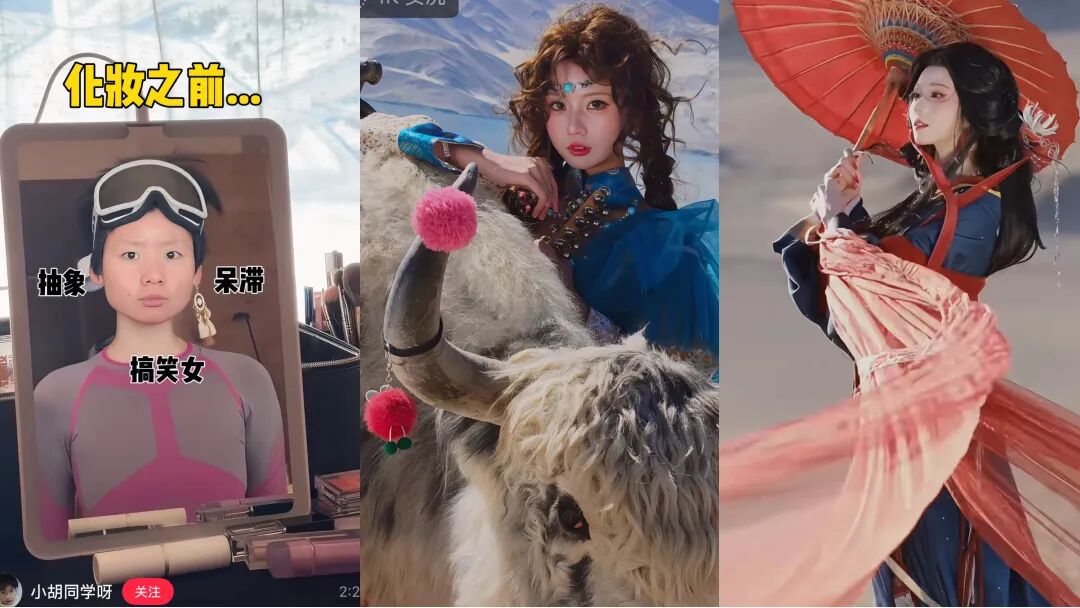 @小胡同学呀,是横跨搞笑女、美妆、旅拍多赛道的非常规“变装”博主。