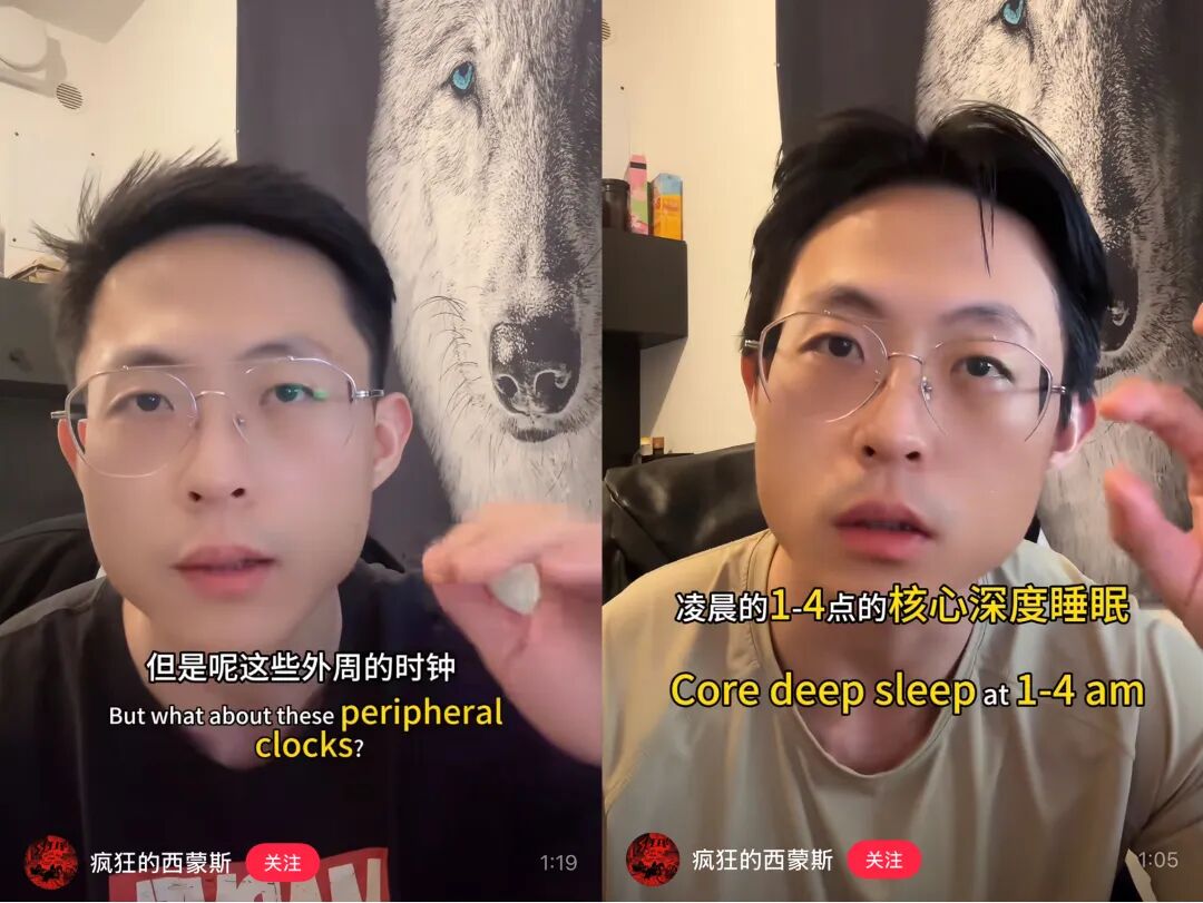 形式简单但内容扎实。3月点赞超14万的视频“熬夜补觉有用吗”中,他先抛出诙谐观点“长期熬夜补觉会变活力老年痴呆”,再引用学术观点论述熬夜后烦躁迟钝的原因、补觉无用的理由及找到最佳入睡时间的方法,后续还讲解了熬夜后的补救措施。
