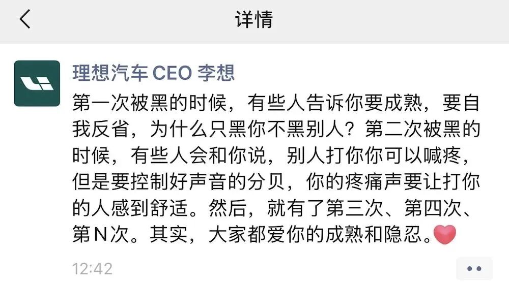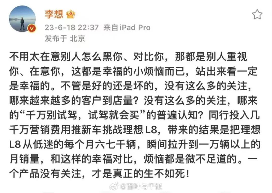 在此阶段,任何针对核心产品的舆论贬低,都会被理想格外重视。