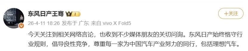 面对近乎直接的“指责”,东风日产新能源总经理王骞很快回应,称公司始终遵守行业规则,倡导良性竞争,尊重每一家为中国汽车产业努力的同行……