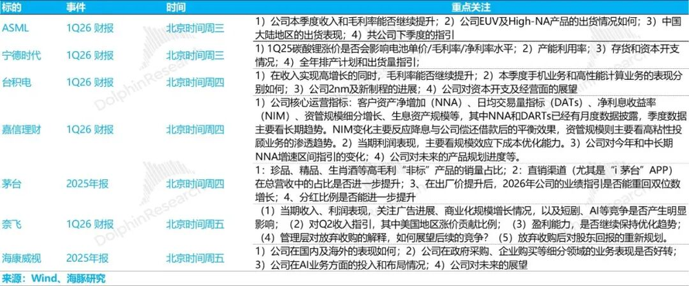 进入4月中旬,美股逐步进入财报季,半导体领域的阿斯麦和台积电将发布财报,其他重点公司还包括宁德时代、奈飞等,关注要点总结如下: