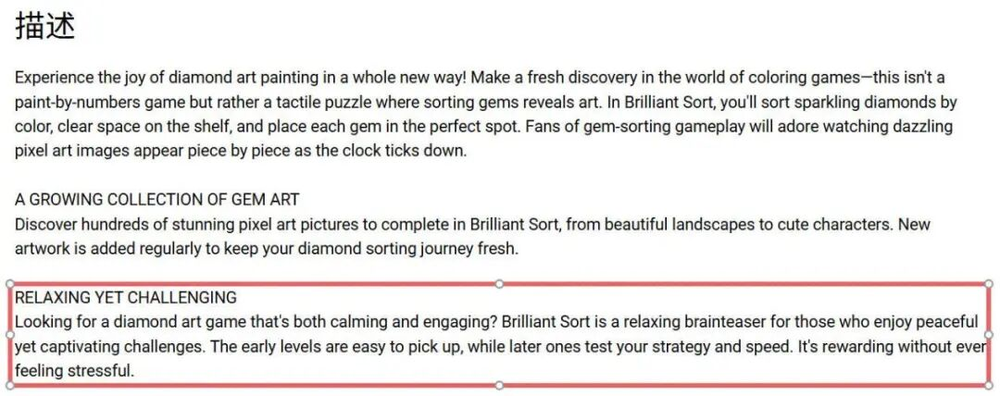 《Brilliant Sort》的玩法与国内出海厂商的《Jewel Coloring》并无本质差异或创新。