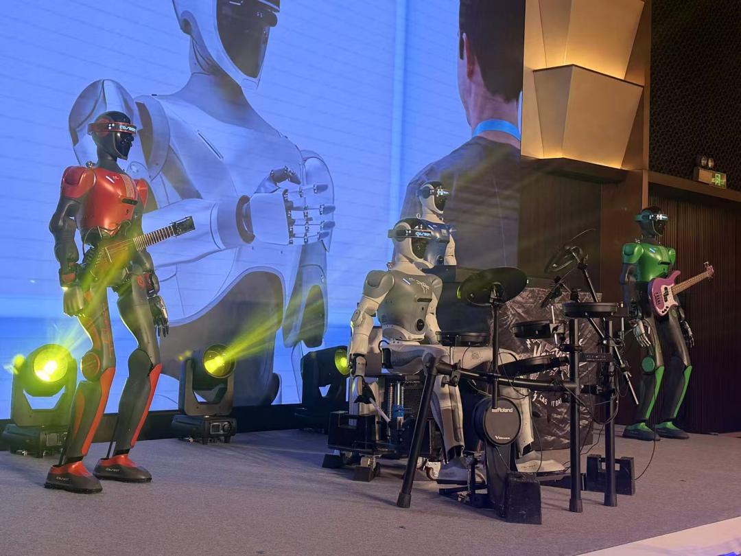 实验室里,一支机器人乐队引人注目,电子琴、贝斯等乐器由不同品牌机器人操作,已调试得有模有样。