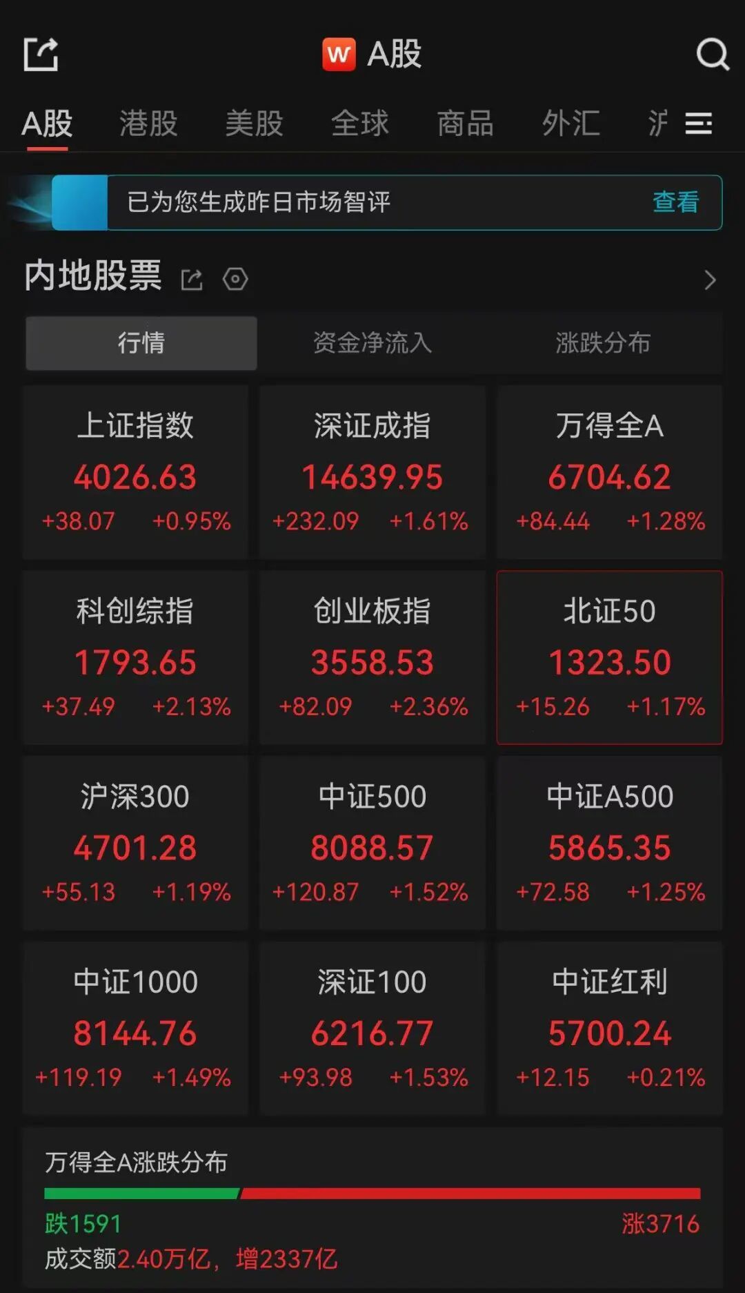 凤凰网财经消息,4月14日A股市场呈现震荡反弹态势,收盘时沪指上涨0.95%,重新站上4000点整数关口,深成指涨幅达1.61%,创业板指更是大涨2.36%,再创阶段新高。沪深两市当日成交额达2.38万亿元,较前一交易日增加2334亿元,全市场有超过3700只个股实现上涨。