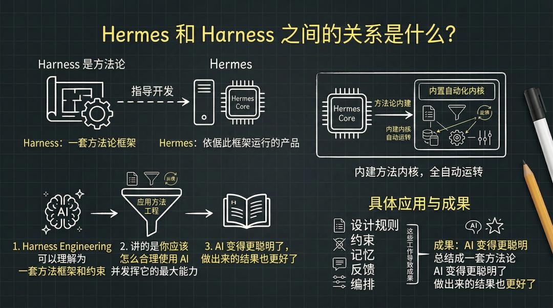 简单说,Harness是方法论,Hermes是基于该方法论开发的产品。